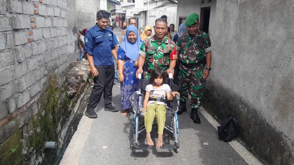 Mataram, NTB – Suasana penuh haru menyelimuti Kelurahan Pagutan, Kecamatan Mataram, Kota Mataram, ketika Komando Distrik Militer (Kodim) 1606/Mataram bersama Pemerintah Kota Mataram laksanakan bhakti sosial dalam rangka memperingati Hari Ulang Tahun (HUT) TNI ke-80. Kegiatan ini difokuskan pada pemberian bantuan kursi roda dan Al-Qur’an kepada warga penyandang disabilitas di tiga lingkungan Pagutan, Selasa (30/9/2025).