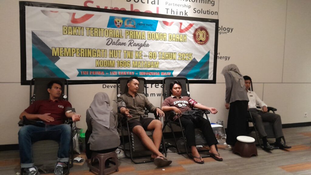 Mataram, NTB – Suasana hangat dan penuh kepedulian sosial mewarnai kegiatan Bakti Teritorial Prima Donor Darah dalam rangka memperingati Hari Ulang Tahun (HUT) ke-80 Tentara Nasional Indonesia (TNI), Selasa (30/9/2025).