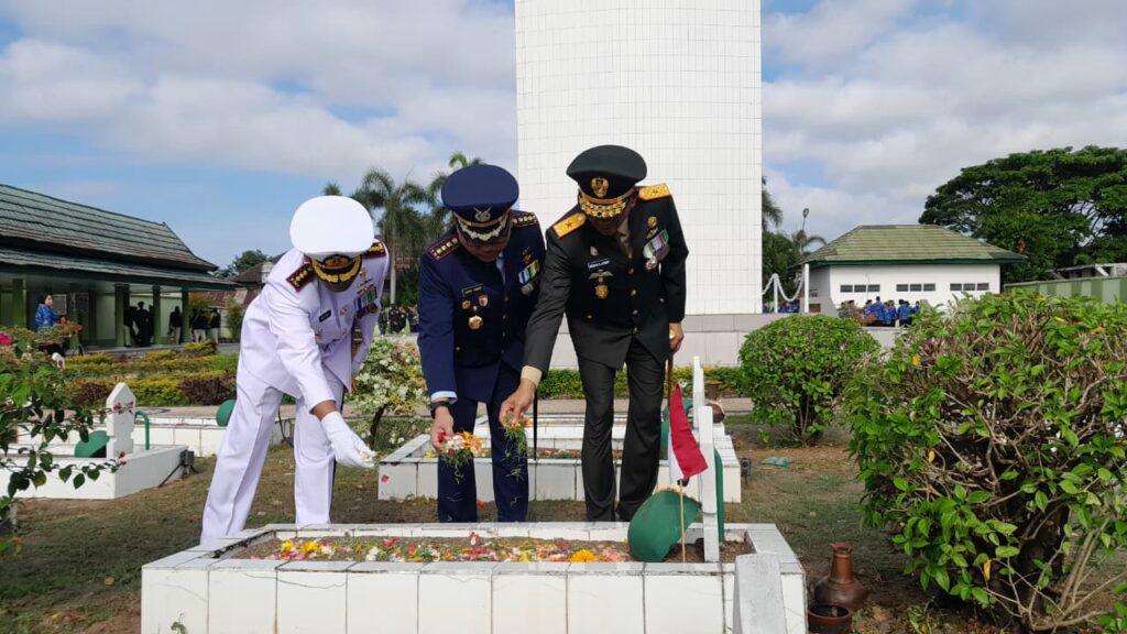 Mataram, NTB – Ratusan peserta dari berbagai unsur menghadiri Upacara Ziarah Nasional dalam rangka memperingati Hari Ulang Tahun (HUT) ke-80 Tentara Nasional Indonesia (TNI) di Taman Makam Pahlawan (TMP) Majeluk, Kota Mataram, Jum’at (3/10/2025).