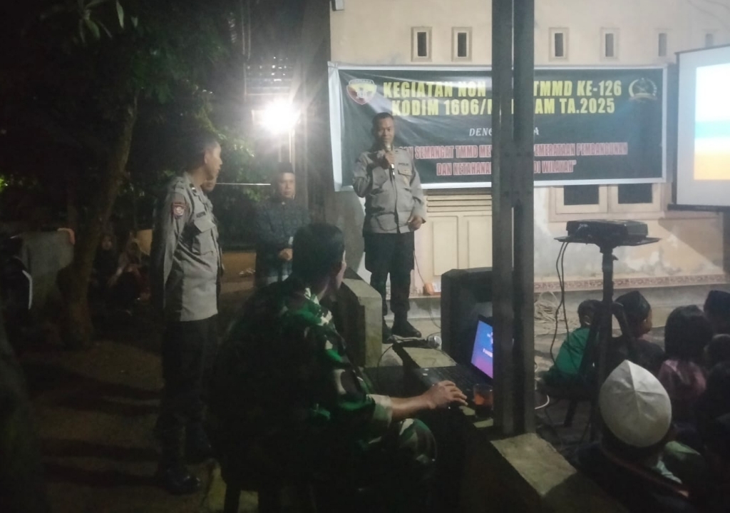 Lombok Barat, NTB – Dalam rangka memperkuat semangat kebangsaan dan menjaga kondusifitas wilayah, Satuan Tugas (Satgas) TNI Manunggal Membangun Desa (TMMD) ke-126 Komando Distrik Militer (Kodim) 1606/Mataram menggelar sosialisasi Wawasan Kebangsaan (Wasbang) dan Keamanan dan Ketertiban Masyarakat (Kamtibmas) di Dusun Gubuk Baru, Desa Giri Madia, Kecamatan Lingsar, Lombok Barat, Sabtu malam (11/10/2025).