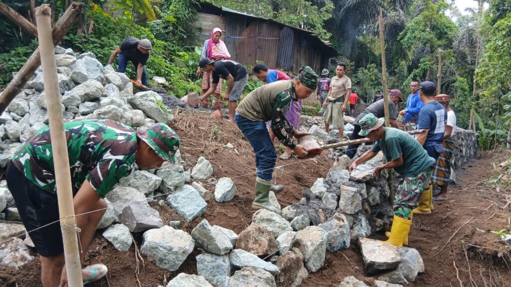 Lombok Barat, NTB – Di tengah teriknya matahari dan debu proyek yang beterbangan, semangat seorang perempuan paruh baya terlihat begitu kuat di Dusun Leong Jaya, Desa Giri Madia, Kecamatan Lingsar, Lombok Barat, Nusa Tenggara Barat. Dialah Inak Nur (65), warga setempat yang tanpa ragu ikut membantu Satuan Tugas (Satgas) TNI Manunggal Membangun Desa (TMMD) ke-126 Komando Distrik Militer (Kodim) 1606/Mataram dalam percepatan pembangunan talud pelebaran jalan di depan rumahnya, Selasa (28/10/2025).