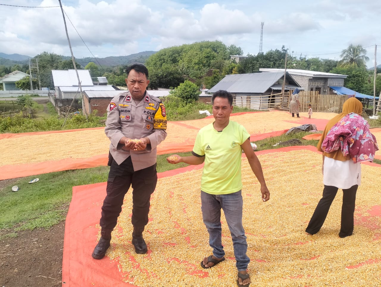 Bhabinkamtibmas Desa Doro Melo Polsek Manggelewa, AIPDA Jainudin, S.H., melaksanakan kegiatan sambang dan pemantauan langsung terhadap warga binaannya pada Jumat, 14 November 2025 sekitar pukul 09.30 Wita di Dusun Makmur, Desa Doro Melo, Kecamatan Manggelewa. Dalam kegiatan tersebut, AIPDA Jainudin memantau aktivitas warga setempat, yaitu Bapak Junaidi, yang sedang menjemur jagung hasil panen dari lahan pertanian seluas 70 are dengan bibit tanam sebanyak 70 kilogram, dan menghasilkan panen sekitar 3 ton jagung. Kehadiran Bhabinkamtibmas di tengah kegiatan warga dimaksudkan untuk memastikan situasi tetap aman, serta memberikan pembinaan kamtibmas secara humanis.