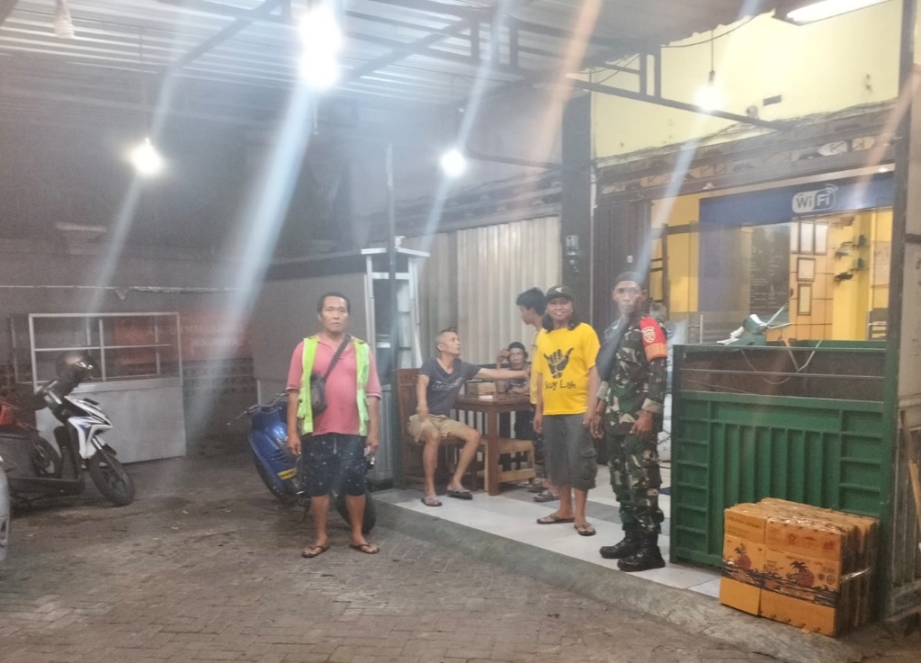 Mataram, NTB Dalam rangka menjaga keamanan dan kenyamanan masyarakat, Binatara Pembina Desa (Babinsa) Kelurahan Pagesangan Timur Komando Rayon Militer (Koramil) 1606-05/Mataram, Komando Distrik Militer (Kodim) 1606/Mataram melaksanakan patroli malam sekaligus memberikan imbauan kamtibmas di wilayah binaannya. Salah satu titik yang menjadi perhatian adalah area parkir di Lingkungan Gebang Barat, tempat banyak warga berkegiatan dan melakukan transaksi di sejumlah gerai sekitar, Selasa malam (18/11/2025).