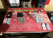 Dalam penggeledahan, petugas berhasil mengamankan sejumlah barang bukti berupa satu buah alat hisap (bong), satu plastik klip berisi sabu, satu pipet plastik berisi sabu, dua buah korek api, satu dompet warna cokelat, satu sendok pipet rakitan, uang tunai sebesar Rp117.000, satu unit handphone, serta satu bungkus rokok merek Twizz.