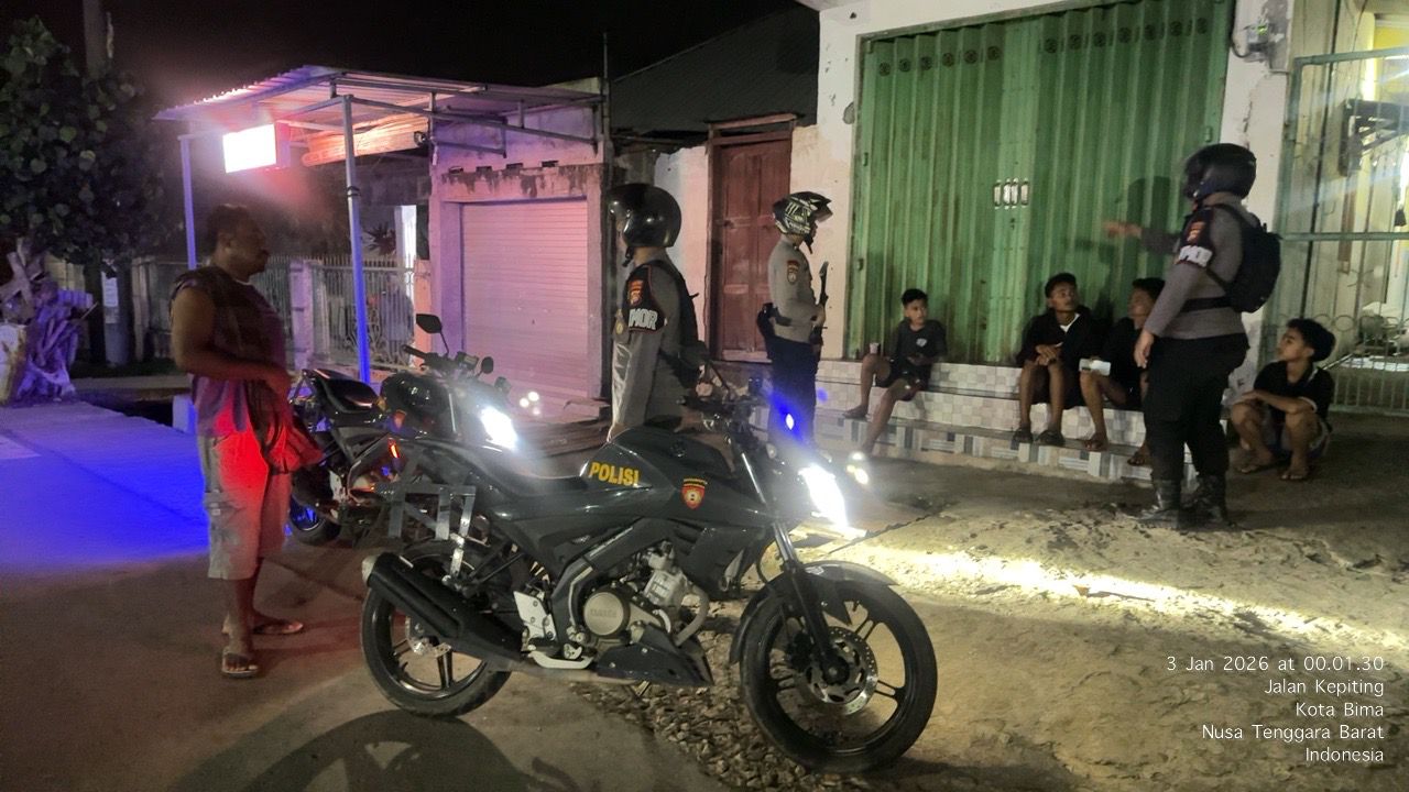 Kota Bima, NTB (03 Januarari 2026) – Dalam rangka menjaga situasi keamanan dan ketertiban masyarakat (kamtibmas) tetap aman dan kondusif, Satuan Samapta Polres Bima Kota melaksanakan patroli rutin pada Sabtu dini hari, 03 Januari 2026, sekitar pukul 03.00 Wita.