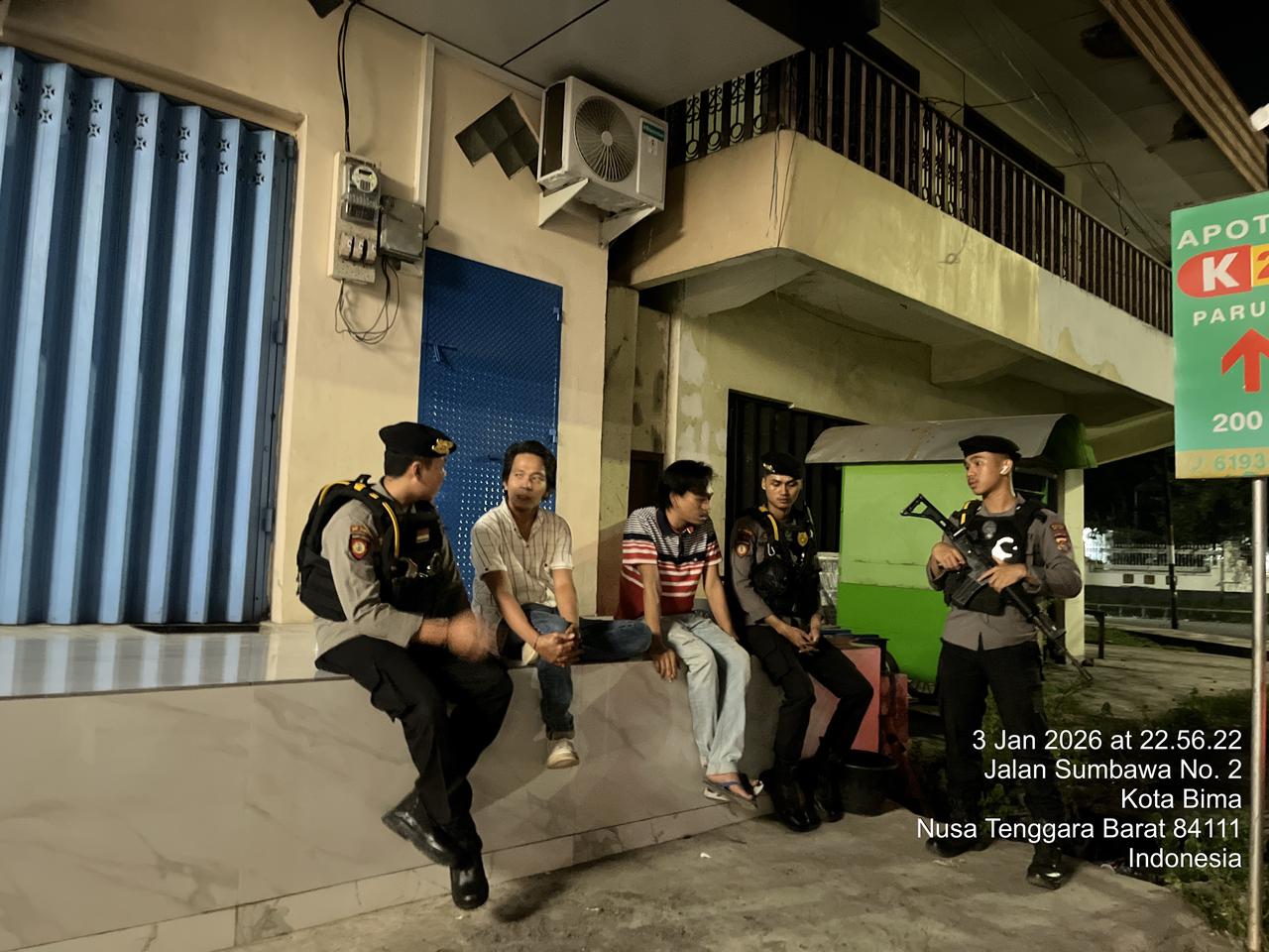 Kota Bima, NTB (04 Januari 2026) – Dalam rangka menjaga situasi keamanan dan ketertiban masyarakat (kamtibmas) tetap aman dan kondusif, Sat Samapta Polres Bima Kota melalui Unit Turjawali melaksanakan Patroli Blue Light pada Sabtu malam, 3 Januari 2026, pukul 21.30 WITA, di wilayah Cabang 4 Sarasuba dan Kelurahan Melayu, Kota Bima.