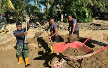 Monitoring dilaksanakan di tengah kondisi malam yang gelap dan medan berlumpur akibat genangan air. Dengan mengenakan perlengkapan lapangan, Babinsa menyusuri permukiman warga di Dusun Bengkang, Desa Persiapan Pengantap, serta titik-titik rawan banjir lainnya. Kehadiran Babinsa di lokasi menjadi bentuk nyata kepedulian TNI dalam memastikan kondisi masyarakat pasca bencana tetap aman dan terkendali.