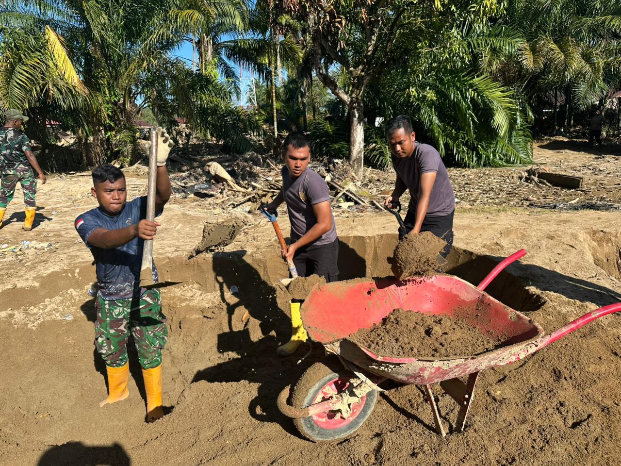 Dalam kegiatan tersebut, personel Brimob melakukan pembersihan satu unit rumah milik warga yang terdampak material pasir, kayu, dan batu akibat banjir bandang. Selain itu, personel juga melaksanakan pembangunan MCK di Masjid At-Taqwa Muhammadiyah, penggalian sumur umum, serta pembuatan ball tank air guna menunjang kebutuhan air bersih masyarakat sekitar.