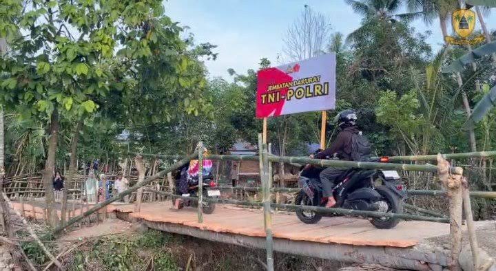 Proses pembangunan jembatan sederhana tersebut berlangsung selama dua hari dan kini dapat dilalui pejalan kaki. Kehadiran jembatan darurat ini sangat membantu masyarakat yang sebelumnya terisolasi akibat terputusnya akses utama.