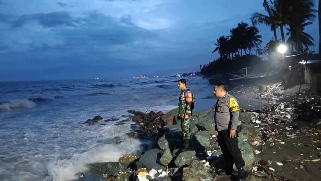 Babinsa dan Bhabinkamtibmas Waspadai Gelombang Tinggi Pantai Gading