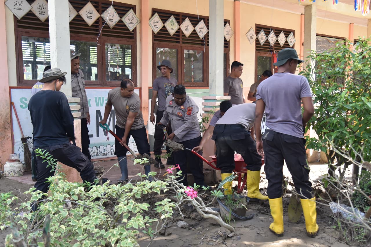 Kegiatan yang dimulai sejak pukul 09.00 WIB tersebut difokuskan pada pembersihan lingkungan sekolah yang terdampak banjir bandang. Personel Polres Bireuen dan Polsek jajaran bahu-membahu membersihkan lumpur di halaman sekolah, ruang kelas, serta area pendukung lainnya agar proses belajar mengajar dapat kembali berjalan dengan aman dan nyaman.