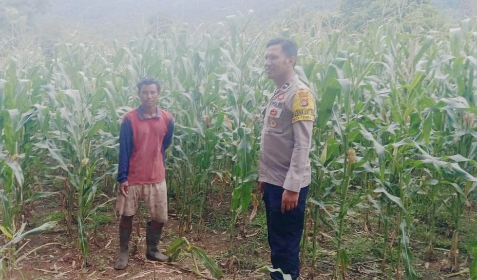 Bhabinkamtibmas Polsek Pajo Pantau Lahan Jagung Warga Dukung Program Ketahanan Pangan Nasional