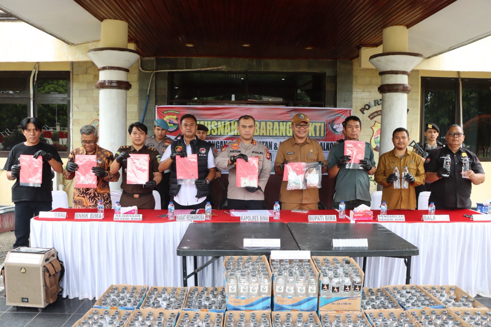 Polres Bima Musnahkan BB Narkotika 276,42 Gram, 466 Butir Tramadol dan 1.825 Botol Arak Bali, Kapolres Tegaskan Komitmen Berantas Narkoba