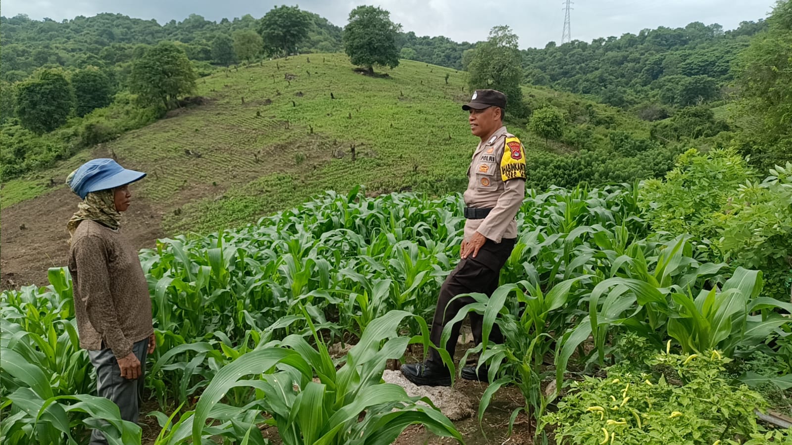 Dukung Ketahanan Pangan, Bhabinkamtibmas Desa Tarusa Pantau Pertumbuhan Lahan Jagung