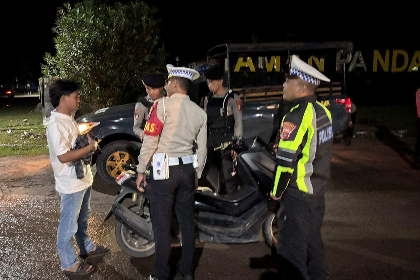 Setelah itu tim patroli gabungan fungsi ini bergerak menuju lokasi yang menjadi fokus patroli yakni di tanjakan dorobelo, seputaran Pantai Kalaki hingga pertigaan patung kuda Desa Panda Kecamatan Palibelo.