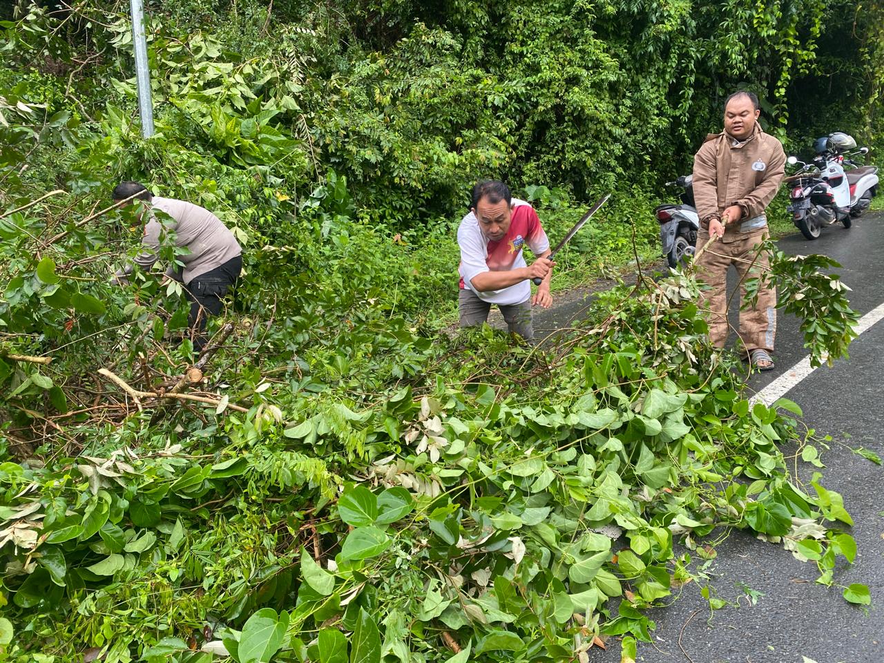 “Kami mengajak masyarakat agar tetap berhati-hati, terutama saat melintas di jalan yang rawan pohon tumbang, serta segera melaporkan kepada pihak kepolisian atau aparat desa apabila menemukan potensi bahaya di lingkungan sekitar,” tambahnya.