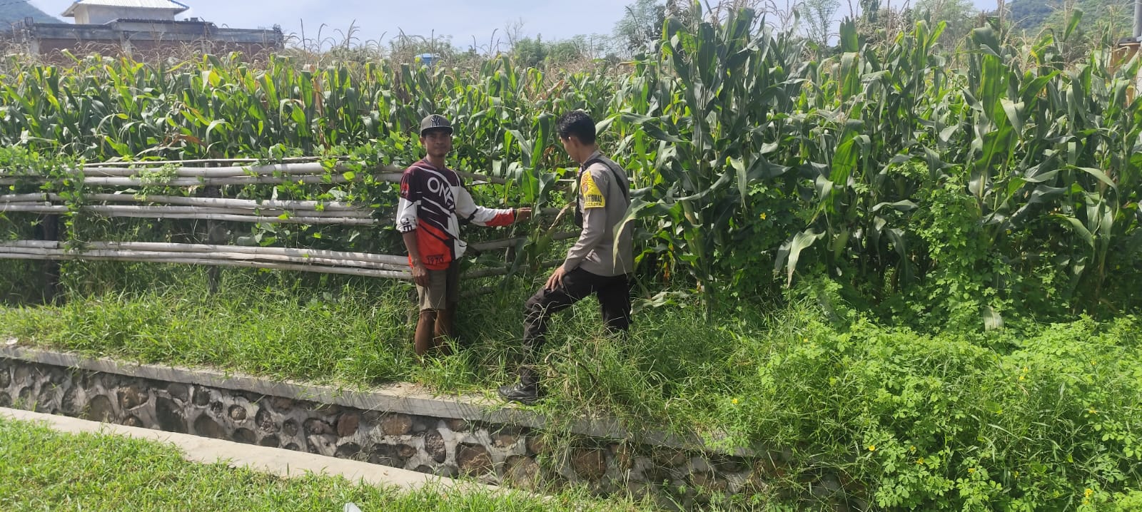 Dalam rangka mendukung pelaksanaan Program Ketahanan Pangan Nasional menuju Indonesia Emas 2045, jajaran Polsek Kempo Polres Dompu melalui Bhabinkamtibmas Desa Songgajah melaksanakan kegiatan pemantauan lahan pertanian jagung milik warga binaan di wilayah Kecamatan Kempo, Kabupaten Dompu.