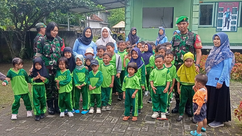 Lombok Barat, NTB – Suasana Pos Ramil Lingsar di Jalan Gora II, Kecamatan Lingsar, Lombok Barat, tampak berbeda pada Minggu (15/2/2026). Puluhan siswa-siswi Taman Kanak-Kanak NW Lingsar dengan seragam hijau cerah berbaris rapi, wajah mereka memancarkan rasa ingin tahu. Di hadapan mereka, Bintara Pembina Desa (Babinsa) Karang Bayan, Pelda (K) Nyoman Dewi Try Susanti, Komando Rayon Militer (Koramil) 1606-08/Narmasa dengan penuh kehangatan memperkenalkan lingkungan sekitar serta berbagai jenis tanaman yang tumbuh di area Pos Ramil.