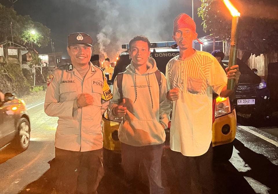 Patroli Cipkon, Polsek Donggo Laksanakan Pengamanan Pawai Obor Menyambut Bulan Suci Ramadhan 1447 H/2026 M, di Desa Rora