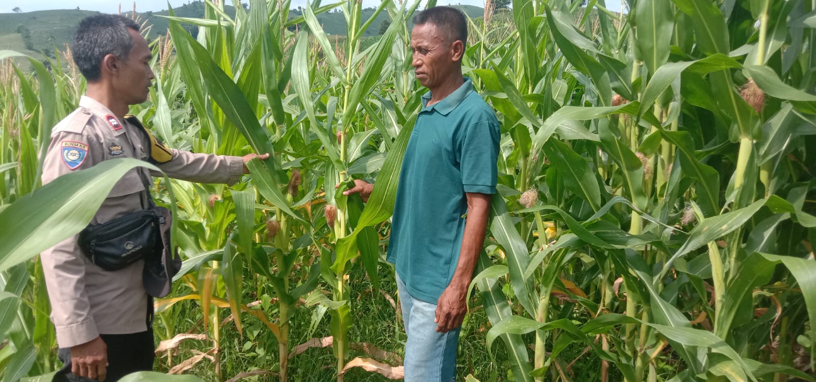 Bhabinkamtibmas Polsek Woja Pantau Lahan Jagung Kelompok Tani “WUWU DEWA”, Dukung Ketahanan Pangan Menuju Indonesia Emas 2045
