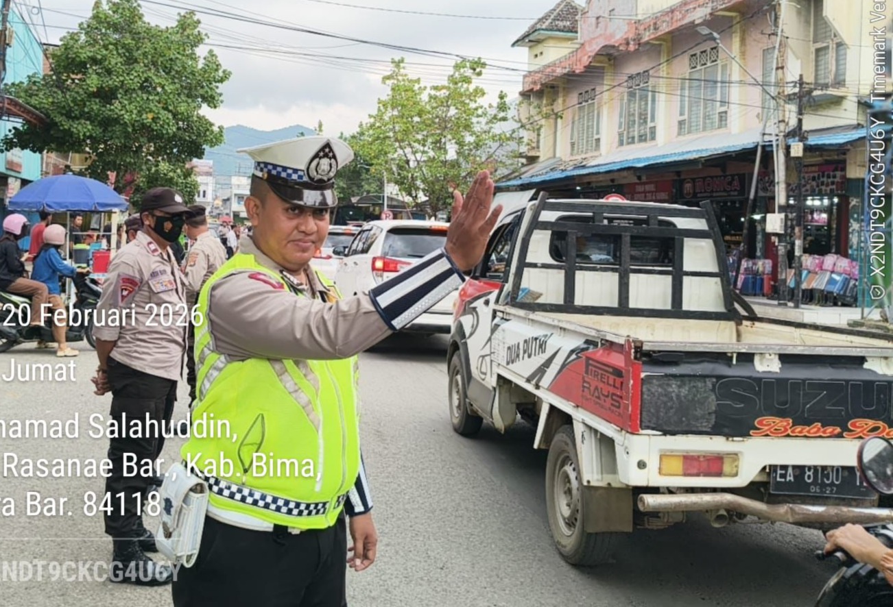 Kota Bima, NTB (21 Februari 2026) – Dalam rangka menjaga kelancaran arus lalu lintas selama Ramadhan 1447 H, personel Satuan Lalu Lintas (Sat Lantas) Polres Bima Kota melaksanakan kegiatan strong point pada sore hari menjelang waktu berbuka puasa, Jumat (20/2/2026).