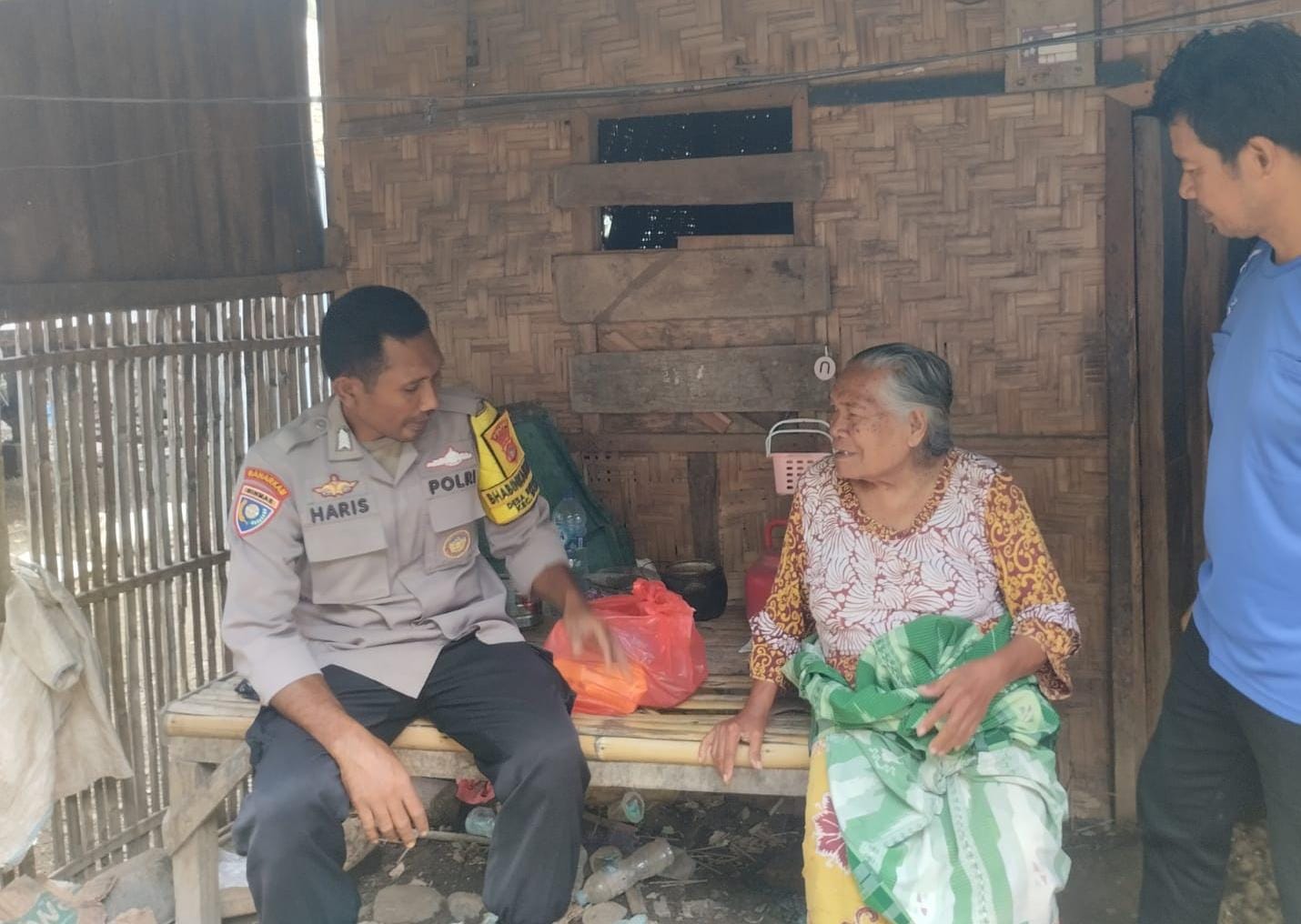 Bripka Abdul Haris menyambangi kediaman nenek Jaenab yang tinggal sebatang kara di Dusun Lavendo Desa Rabakodo Kecamatan Woha Kabupaten Bima.