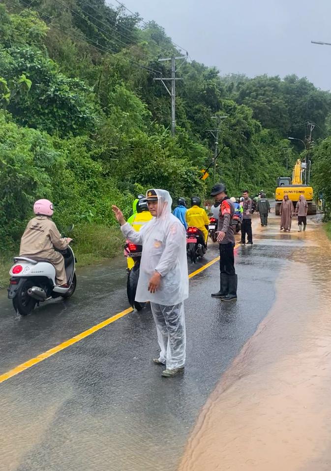 Kapolsek Taliwang, Zainal Abidin, turun langsung ke lokasi bersama personel piket Polsek Taliwang dan anggota Brimob Yon B Sumbawa Barat. Mereka melakukan pengaturan arus lalu lintas di titik terdampak sembari proses pembersihan material longsor berlangsung.