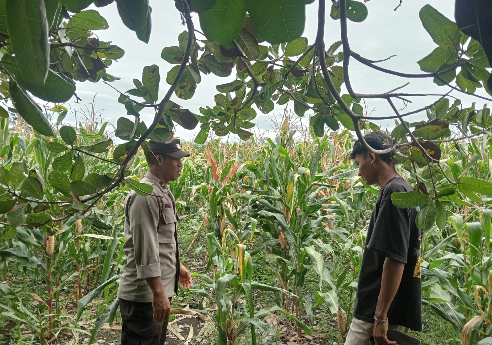 Pada Sabtu (28/2/2026) pukul 11.00 Wita, Bhabinkamtibmas Desa Nangakara, AIPDA Wawan, melaksanakan pemantauan lahan jagung milik warga binaannya di Dusun Nangakara, Kecamatan Pekat, Kabupaten Dompu. Lahan seluas 1 hektar milik Bapak Faisal (40) tersebut ditanami varietas jagung hibrida BISI NK SUMO dan telah memasuki usia tanam 105 hari.