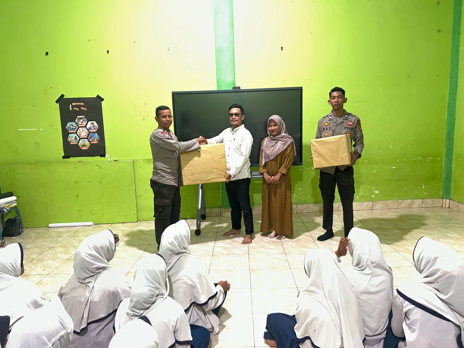“Kami mengajak para santri dan santriwati untuk selalu menjaga akhlak, menjauhi pergaulan negatif, serta bijak dalam menerima informasi agar tidak mudah terpengaruh paham yang menyimpang,” ujar AIPTU M. Nurul Wathani dalam arahannya.