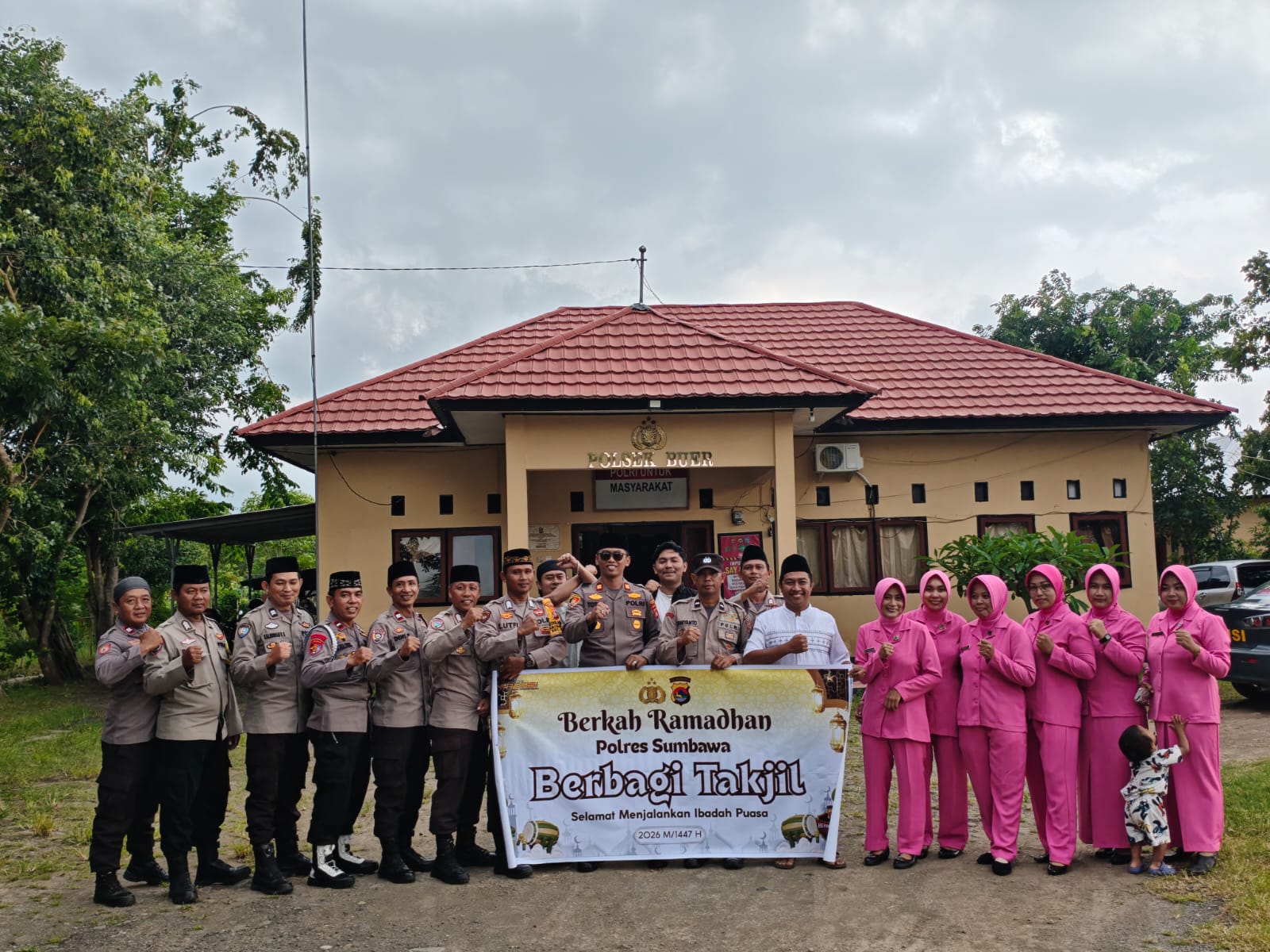 Sumbawa Besar, NTB — Semangat berbagi di bulan suci terus digelorakan oleh jajaran Polres Sumbawa. Kali ini, giliran personel Polsek Buer bersama Pengurus Bhayangkari Ranting Buer yang turun ke jalan untuk menyapa masyarakat melalui kegiatan pembagian takjil gratis dalam rangka Ramadan 1447 H / 2026 M, Kamis (05/03/2026).