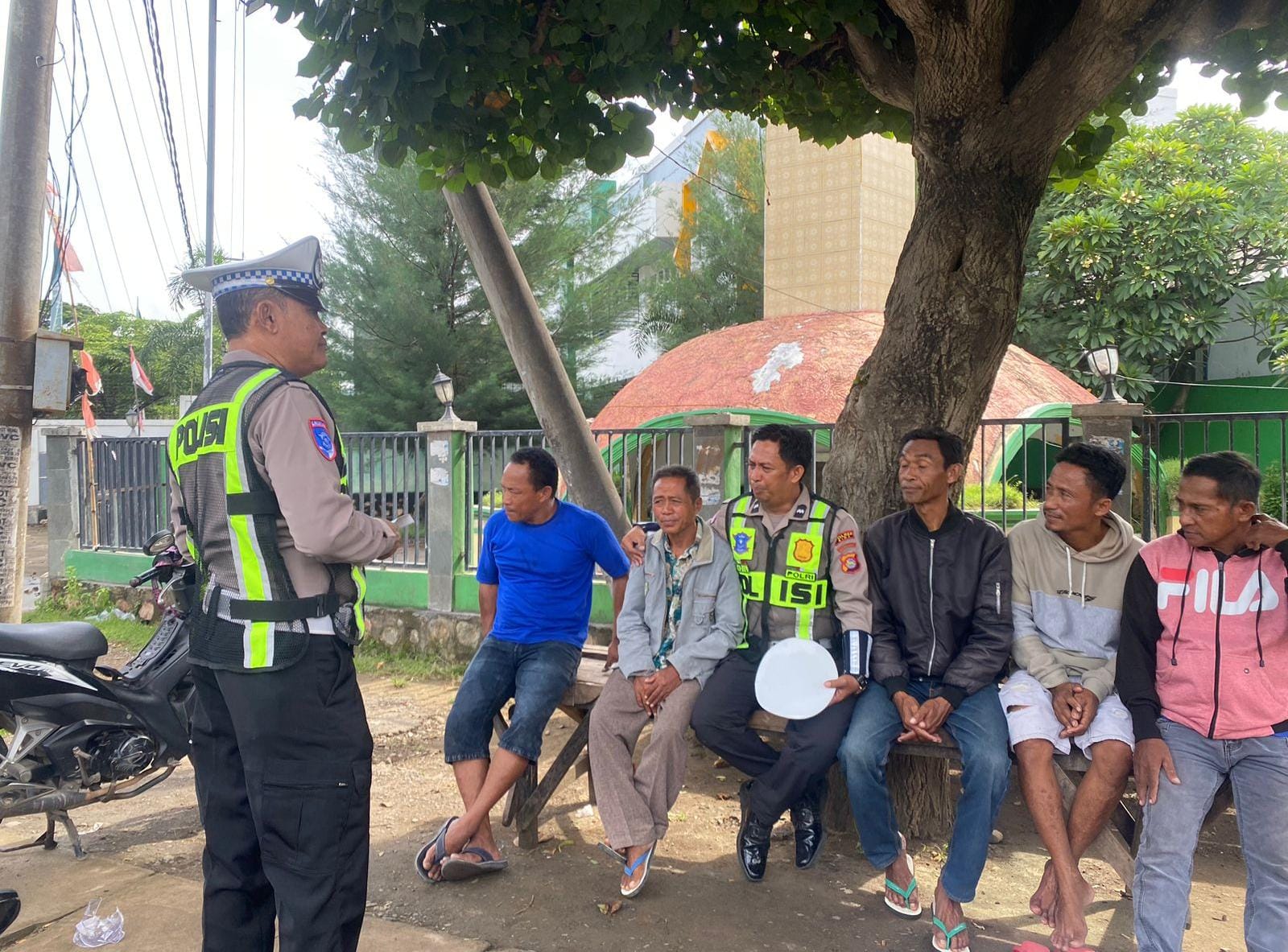 Seperti pada Sabtu 7 Maret 2026 anggota Unit Kamsel Satlantas Polres Bima menyambangi pangkalan ojek di pertigaan terminal Tente.