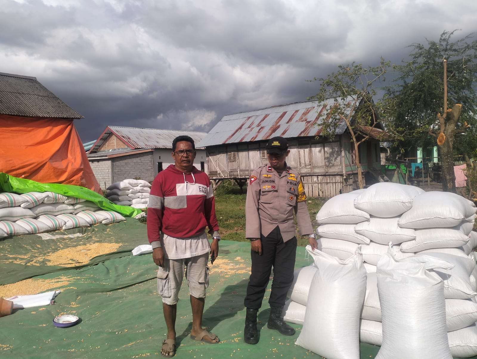Dalam rangka mendukung Program Ketahanan Pangan Nasional menuju Indonesia Emas 2045, Bhabinkamtibmas Desa Doro Melo Polsek Manggelewa Polres Dompu AIPDA Jainudin, S.H. melaksanakan kegiatan pemantauan hasil panen jagung milik warga binaan di wilayah Desa Doro Melo, Kecamatan Manggelewa, Kabupaten Dompu, Kamis (12/3/2026).