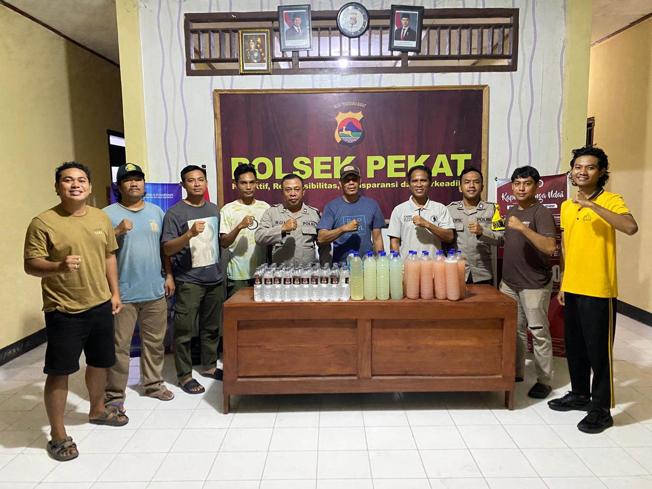 Polsek Pekat juga mengimbau kepada seluruh lapisan masyarakat agar tidak terlibat dalam peredaran maupun konsumsi minuman keras ilegal yang dapat merugikan diri sendiri maupun orang lain.