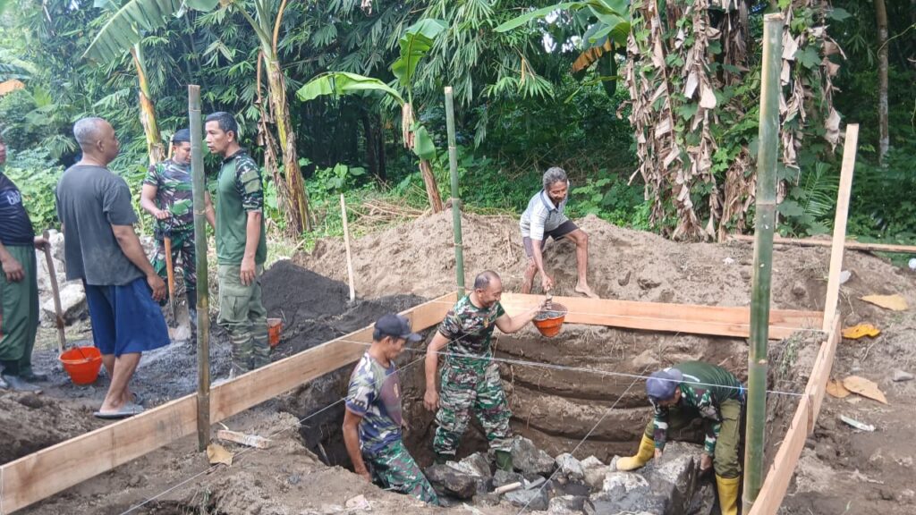 Di balik deru alat kerja dan kesibukan pengukuran, tampak kehangatan kebersamaan antara personel TNI dan masyarakat setempat. Mereka bergotong royong menyiapkan lokasi hingga melakukan pengukuran titik pondasi secara teliti. Setiap tahap pekerjaan dilakukan dengan penuh kehati-hatian demi memastikan kualitas konstruksi sesuai perencanaan.