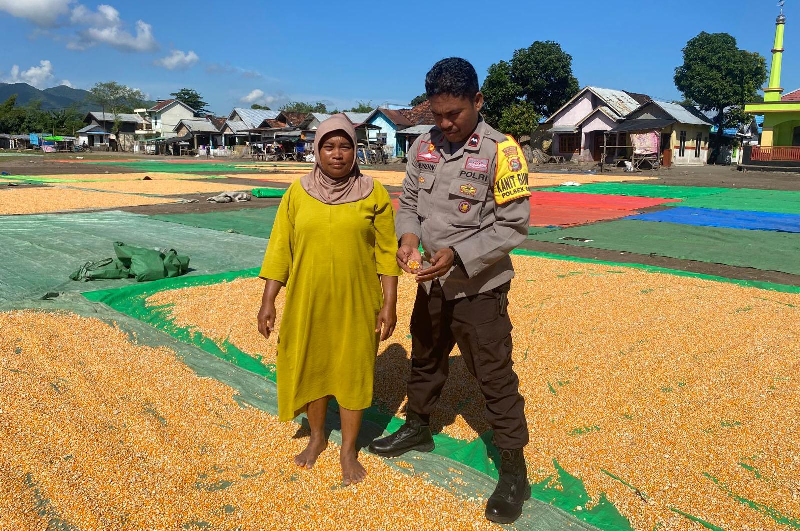 Seperti halnya yang dilaksanakan oleh Kanit Binmas Polsek Bolo Aipda Rusdin pada Sabtu 4 April 2026 memantau dan membantu warga desa Tambe menjemur jagung sekira pukul 09.Wita pagi kemarin.