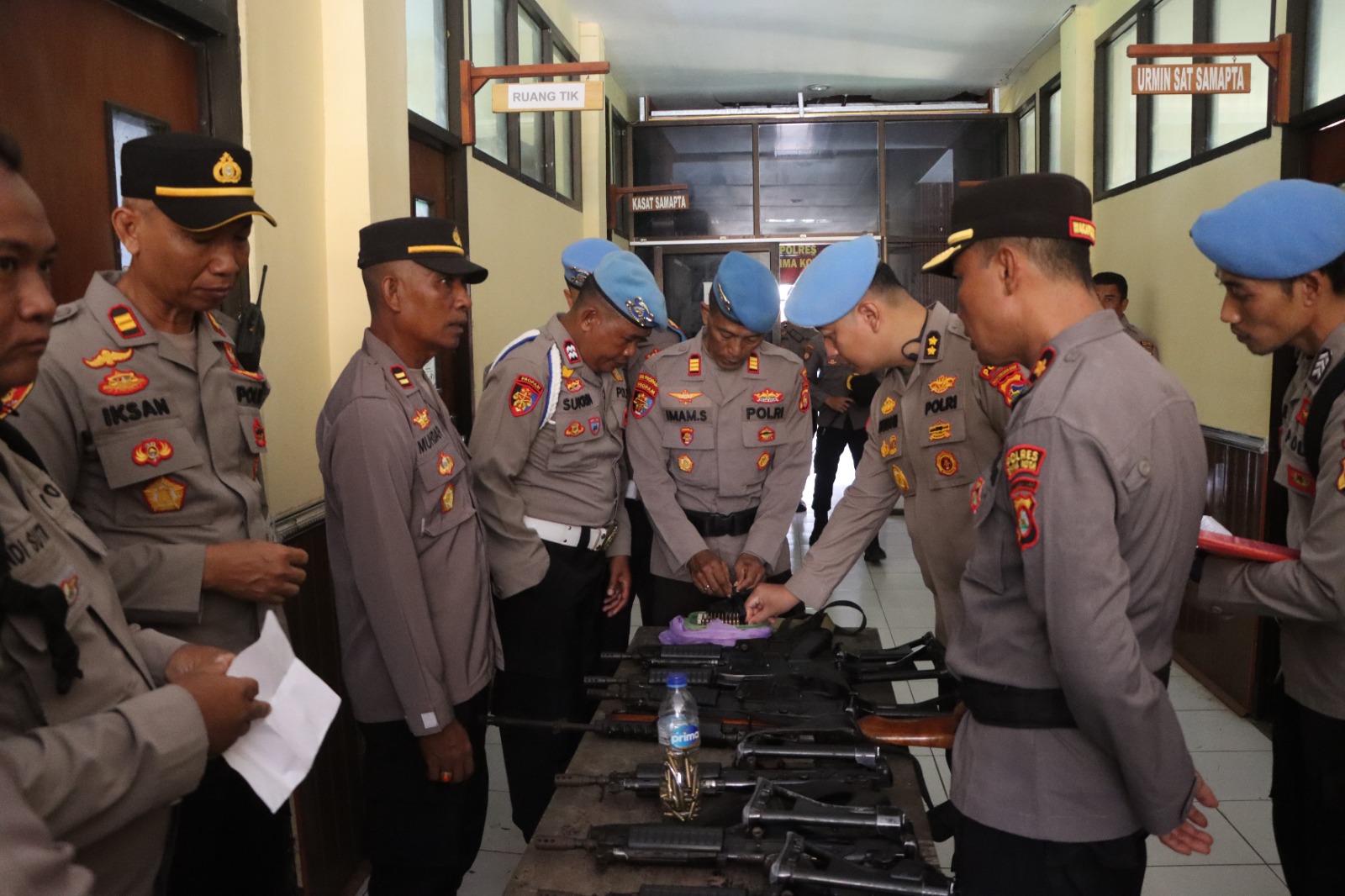 Dari hasil pemeriksaan, secara umum seluruh pemegang senpi inventaris di lingkungan Polres Bima Kota dinyatakan lengkap dan dalam kondisi baik.