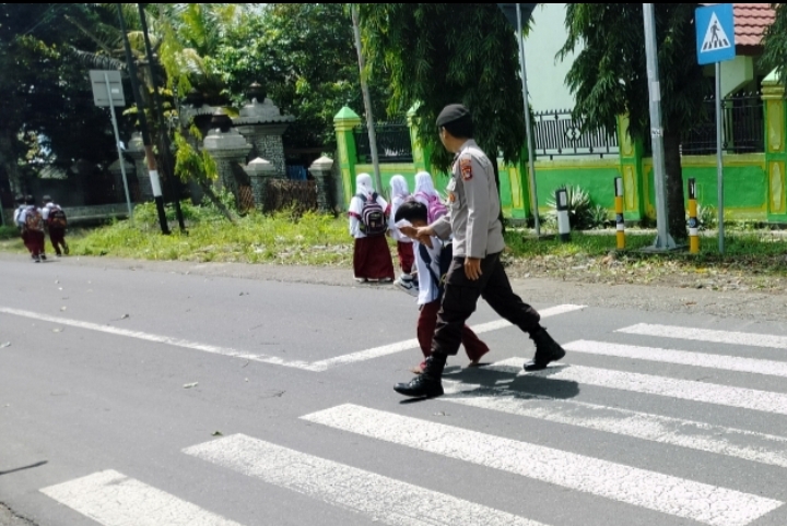Personel Polsek Suela Laksanakan Pengaturan Lalu Lintas di Depan SDN 2 Suela untuk Tingkatkan Keamanan