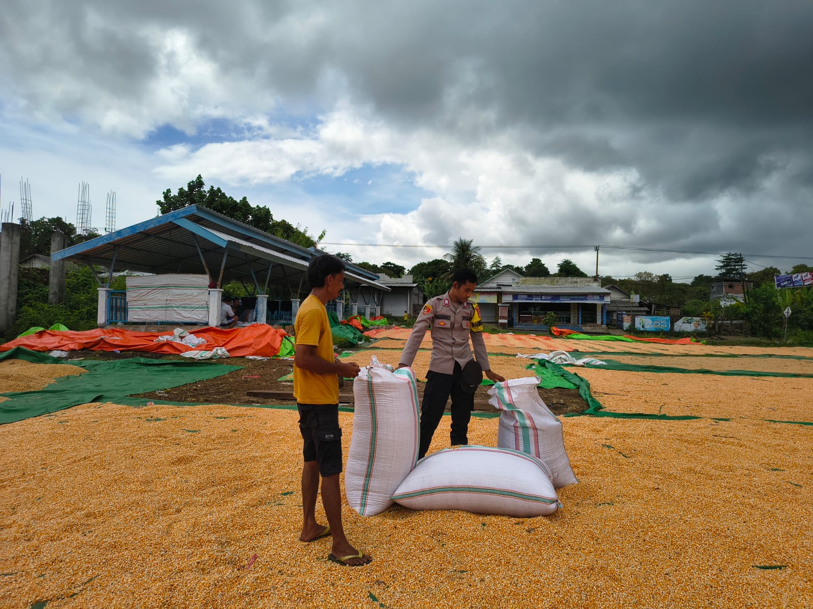 Dalam pelaksanaannya, Bhabinkamtibmas melakukan pemantauan terhadap proses penjemuran hasil panen jagung serta berdialog langsung dengan petani guna mengetahui kondisi dan kendala yang dihadapi di lapangan.