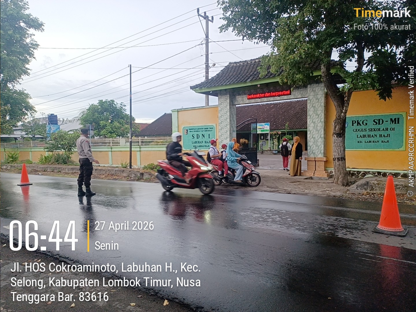 Lombok Timur – — Kapolsek Labuhan Haji bersama anggota Polsek Labuhan Haji melaksanakan kegiatan Rawan Pagi (strong point), bertempat di depan SDN 1 Labuhan Haji.Senin (27/04/2026). pada pukul 06.30 Wita.